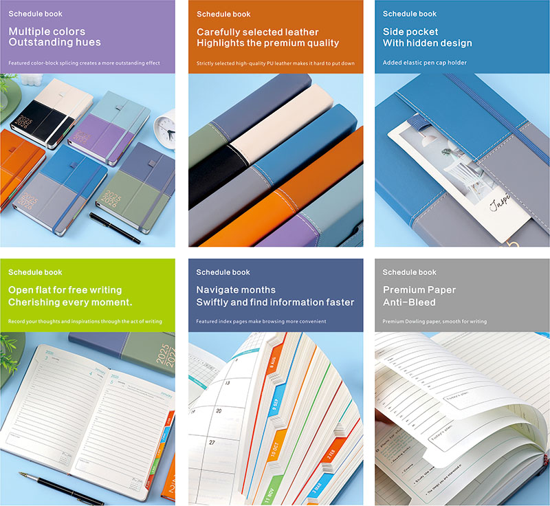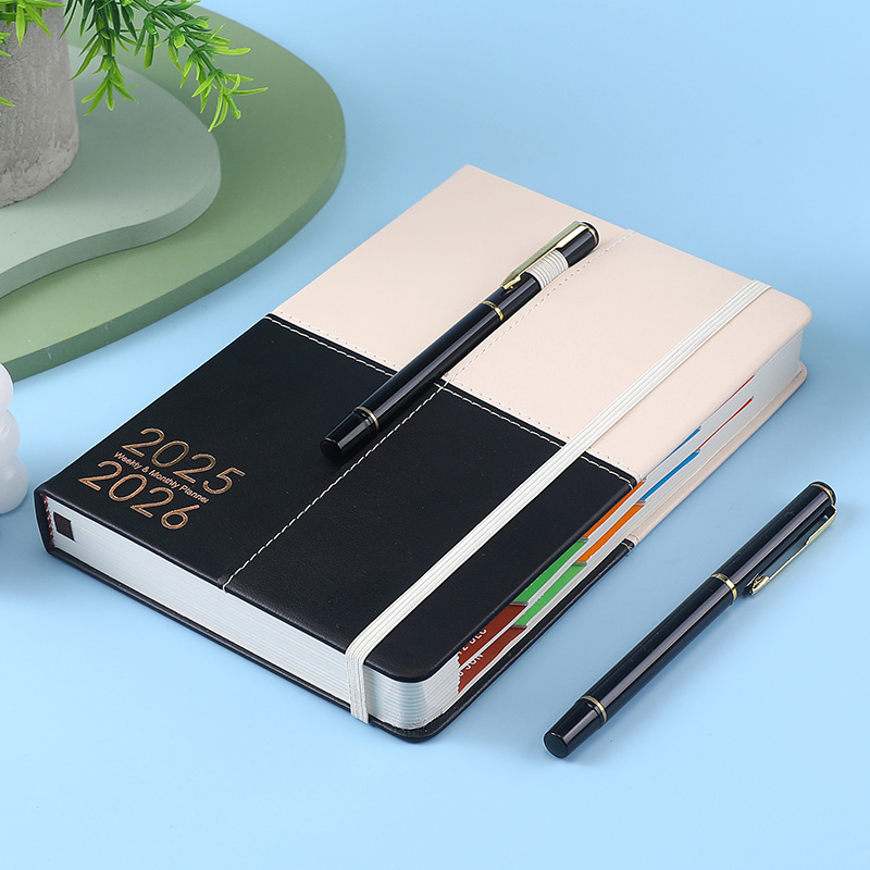 この毎日の計画ノートは、2色の時間とゆったりとした計画のデザインコンセプトを通じて、内側のページを平らに保護するために弾力性のあるストラップを装備した2色のステッチと縫製を備えたカバーを作成します。2025-2026の超長い期間を明確にマークします。