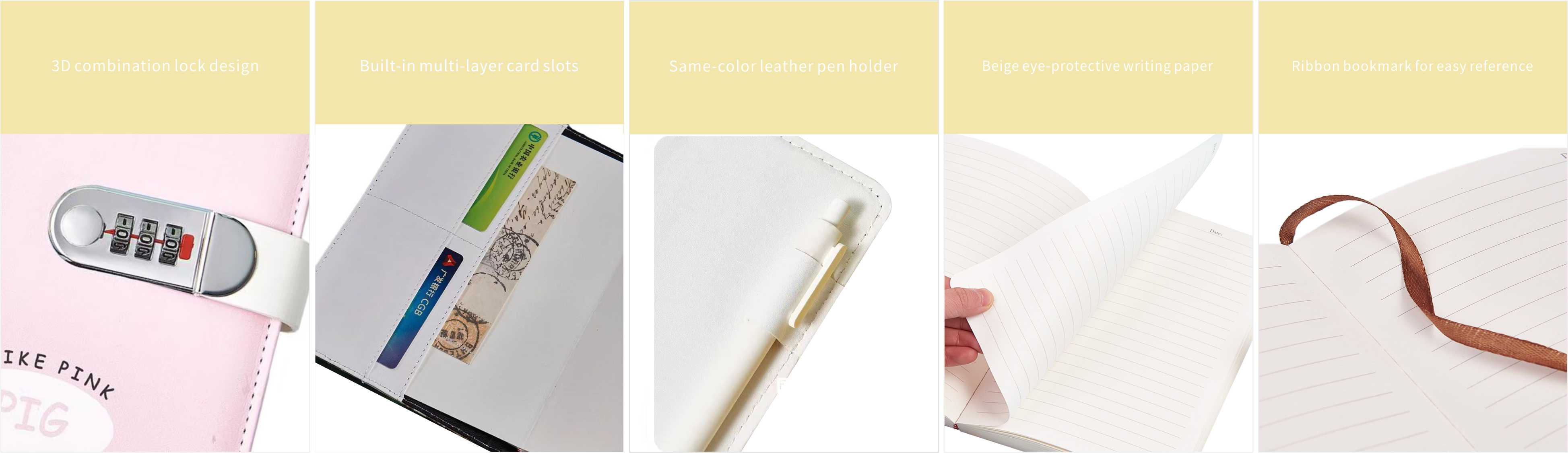 パスワードロックを備えたこの日記は、さまざまなかわいいカバーパターンを提供します。どんなスタイルが好きであっても、ここでお気に入りの選択を見つけることができます。また、頑丈で耐久性のある金属パスワードロックも装備されています。ユニークなパスワードを自分で設定して、それを開いて内側のページを読むことができることを確認して、プライバシーと重要な情報に対して信頼できる保護を提供することができます。いつでもアイデアを録音するのに便利にするために、私たちの日記も思慮深くペンの位置を設定します。ペンを着実に保持できるため、必要なときにいつでもペンレコードを取得できます。もう1つの顕著な特徴は、その内側のバッグ機能です。パスワードロックを備えたこの日記には、複数のカードソケットと内側のポケットが装備されています。これにより、銀行カード、IDカード、メンバーシップカード、領収書などのアイテムをきちんと保管でき、これらの重要なアイテムを失うことを心配する必要がなくなります。